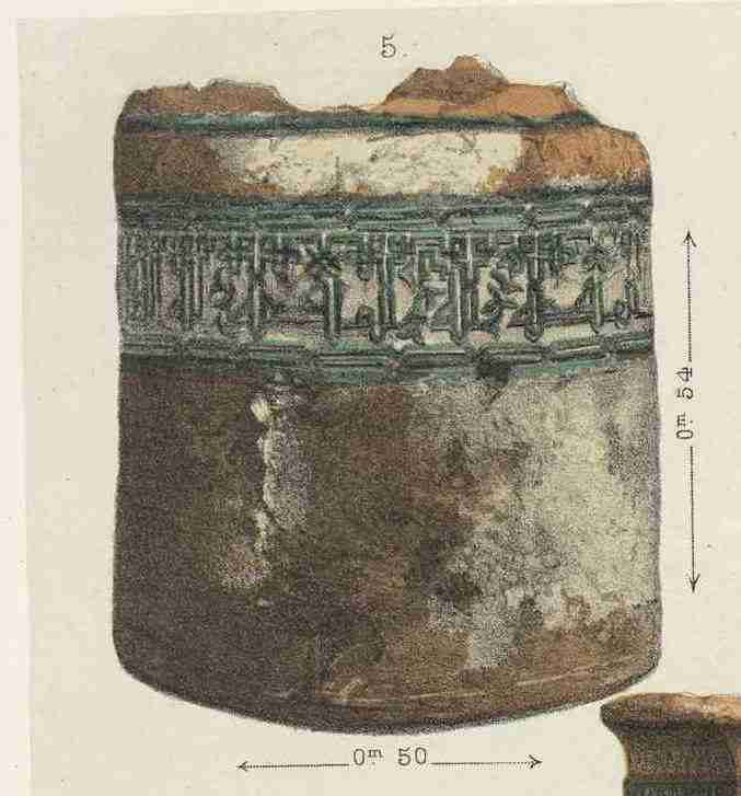 Referencias: Dibujo del brocal en “Brocales de pozo árabes y mudéjares”; Museo Español de Antigüedades II; 1874 No. Inventario 271 • Se trata de un brocal cilíndrico de fondo blanco, tiene esmaltado en verde el labio superior y una inscripción en cúfico que lo rodea. La inscripción tiene 0,13 m de alto, la traduce Rodrigo Amador de los Ríos como EL DOMINO [DE TODAS LAS COSAS, PERTENECE] A DIOS. • El brocal fue descubierto en el mismo jardín de Toledo donde se encontró el brocal de la ficha MAVIT 000116 (brocal del jardín de los Bécquer). El propietario de la casa, Francisco Pérez Hernández, lo regaló al arquitecto provincial D. Mariano López Sánchez y este lo donó al Museo Provincial. Es similar al conservado en el A&V Museum, pero de menores proporciones. Se encuentra actualmente en el Museo de Santa Cruz. AMADOR DE LOS RÍOS, Rodrigo; “Brocales de pozo árabes y mudéjares”; Museo Español de Antigüedades II; 1874; pág. 500-506 AMADOR DE LOS RÍOS, Rodrigo; “Monumentos Arquitectónicos de España. Toledo”; (Madrid, 1905); pág. 220 |
