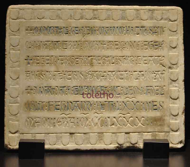 Objeto: Lápida de piedra labrada y policromada Contexto cultural: Islámico Datación: s. XIII (fecha en la lápida 1252) Material: Piedra labrada y policromada Procedencia: Capilla de Belén del Convento de Santa Fe (Toledo) Ubicación actual: Museo de Santa Cruz (Toledo) Estado de visibilidad actual: Visible Dimensiones: 25 cm. de largo por 31 de ancho |