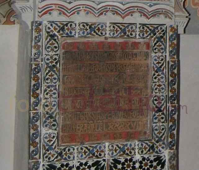 Objeto: Lápida con el epitafio de don García Pérez de Toledo Contexto cultural: Cristiano Datación: s. XIII (fecha en la lápida 1260) Material: Procedencia: Probablemente de alguno de los sepulcros que estarían situados en los arcos de la capilla del Corpus Ubicación actual: Entre los dos arcos del lado izquierdo de la capilla del Corpus Christi de la iglesia de los Santos Estado de visibilidad actual: Visible Dimensiones: 41 x 39 cm. |